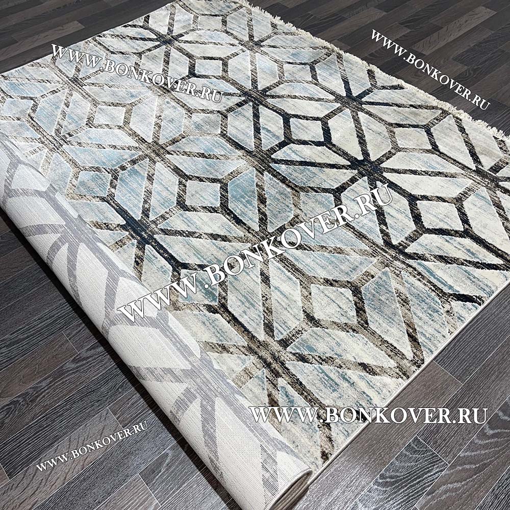 Современный Турецкий Ковер Дизайн 134 Геометрический Серый с Синим станет идеальным преображением жилого помещения, подчеркивая высокий статус семьи владельца.