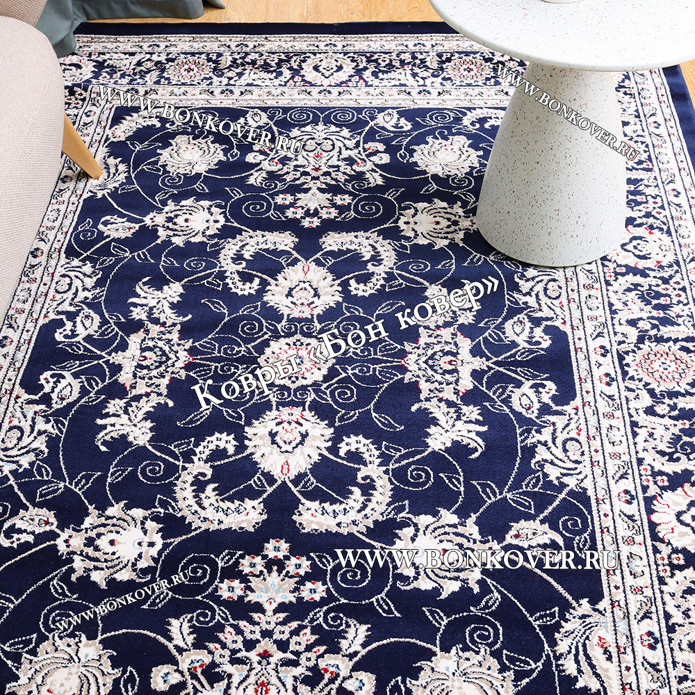 Элегантный Турецкий Ковер Для гостиной дизайн 79 синий наполняет интерьер квартиры теплом и уютом, гармонично сочетает в себе изящество и стиль. Он соткан из высококачественных материалов, комфортный и долговечный.